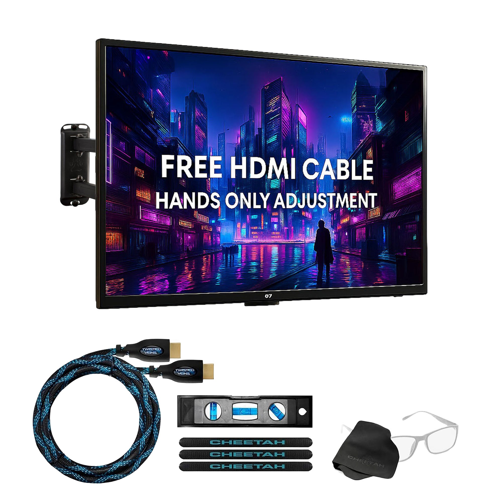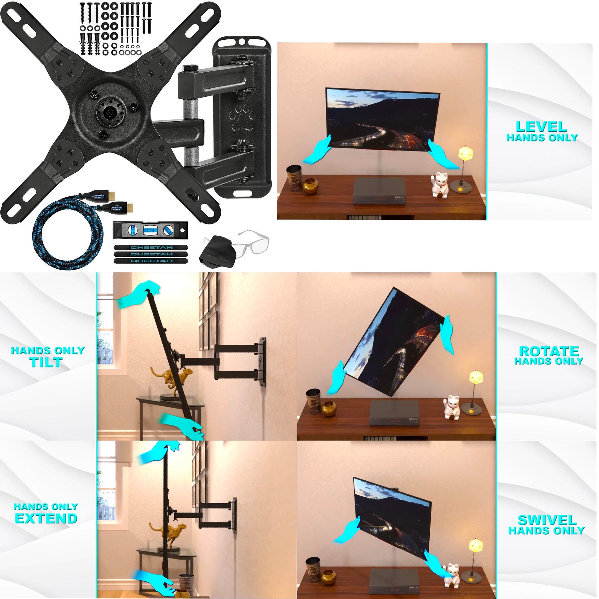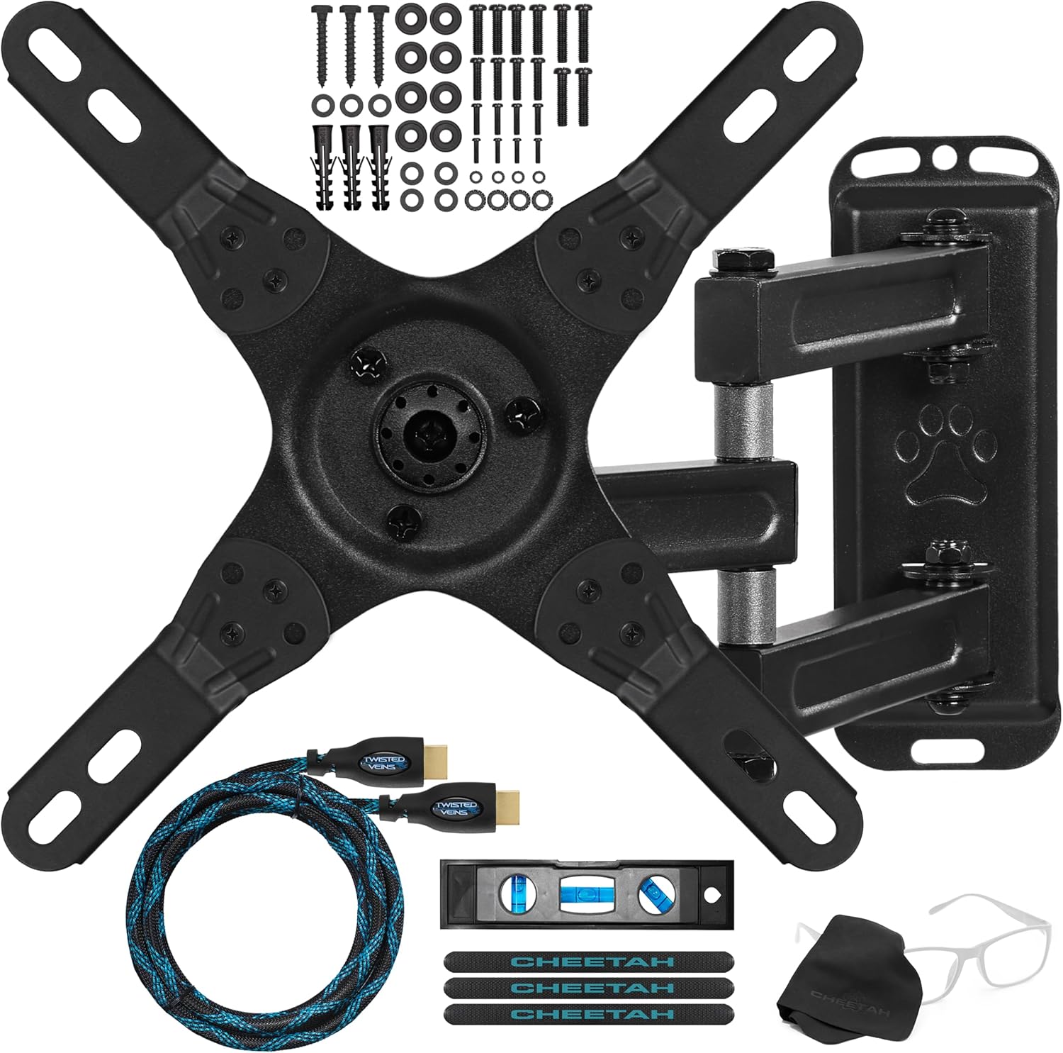 10' TWISTED VEINS HDMI CABLE The mount includes a 10’ Twisted Veins High Speed with Ethernet HDMI cable featuring 4K 60HZ 3D signal support and a protective braided jacket.